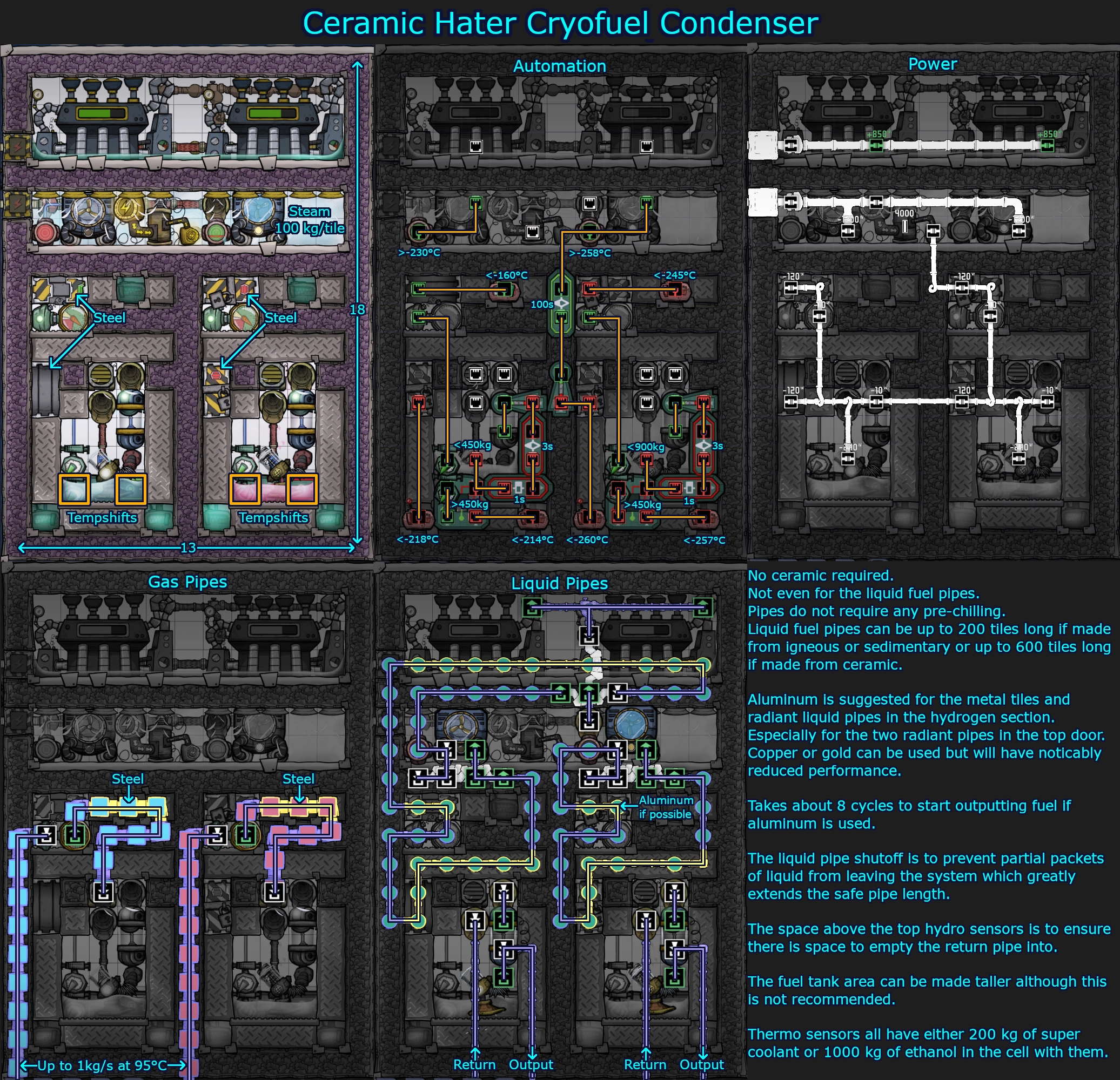 Designed to maximize production of cryofuel while requiring absolutely no ceramic, not even for the fuel lines to the rockets, the Ceramic Hater Cryofuel Condenser is capable of processing a full 1 kg/s of 95℃ oxygen and hydrogen into cryofuel.